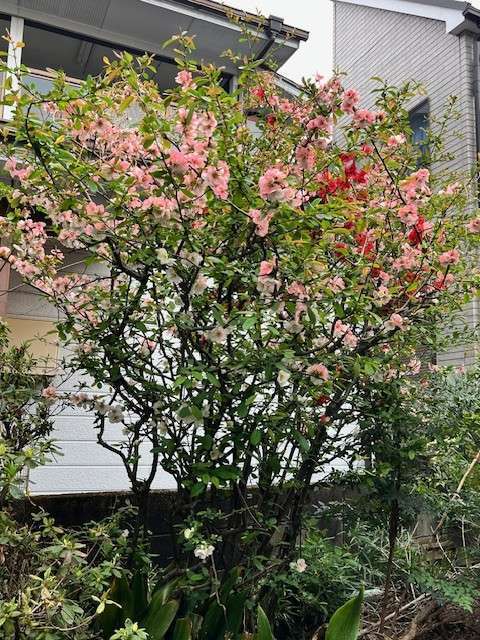 いよいよ今年度も終わり、 事務所の庭に咲いているボケ??の花?? お向かいの高校の桜も見事...
